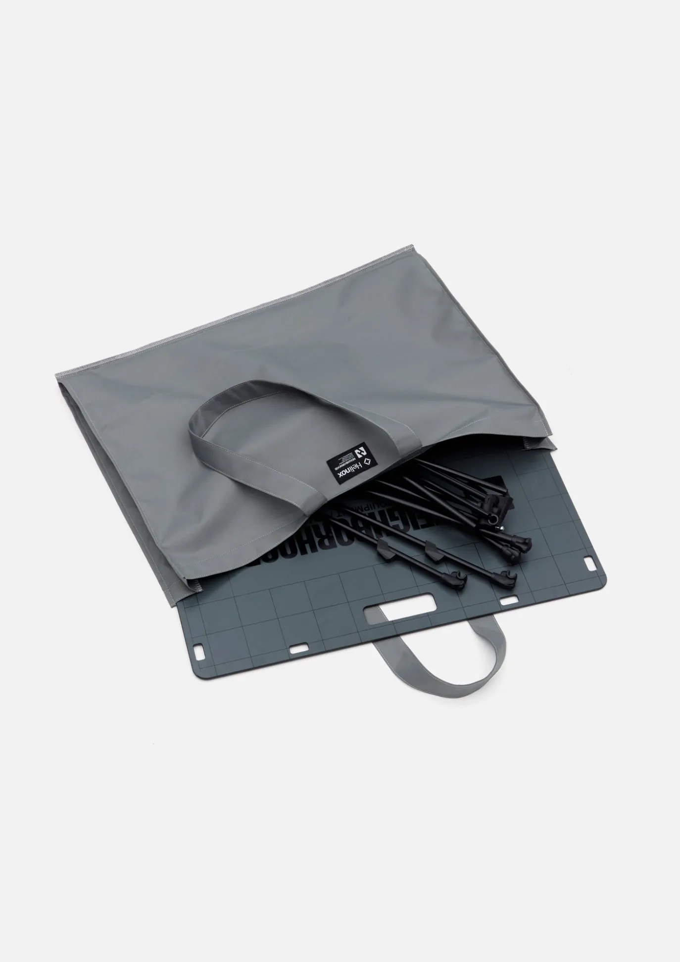 Solid Top Type Table Set With Sturdiness And Easy To Maintain. Dyed In Original Gray Color And Printed With Brand Logo. Exclusive Storage Bag Included. Collaboration Model With Helinox.