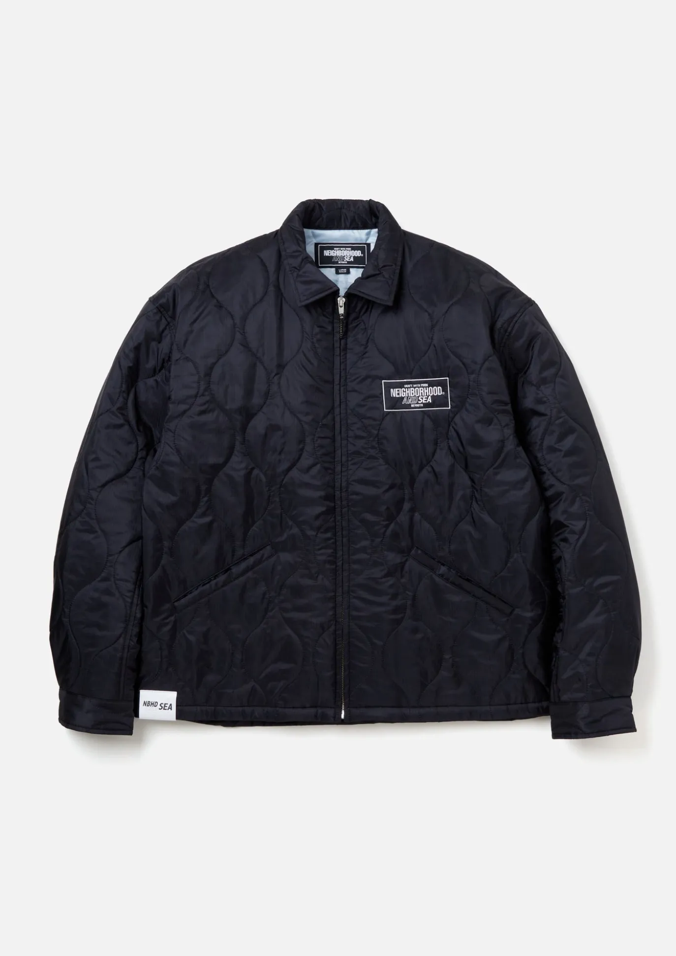 Souvenir Jacket In Shiny, Lightweight Ripstop Nylon Quilt. Front Zip Closure With Slash Pockets On Both Sides. Embroidered Brand Logo On Left Chest And Back. Collaboration Name On The Right Hem And Clip Tag Is Attached On The Side Seam. Collaboration Model With Wind And Sea.