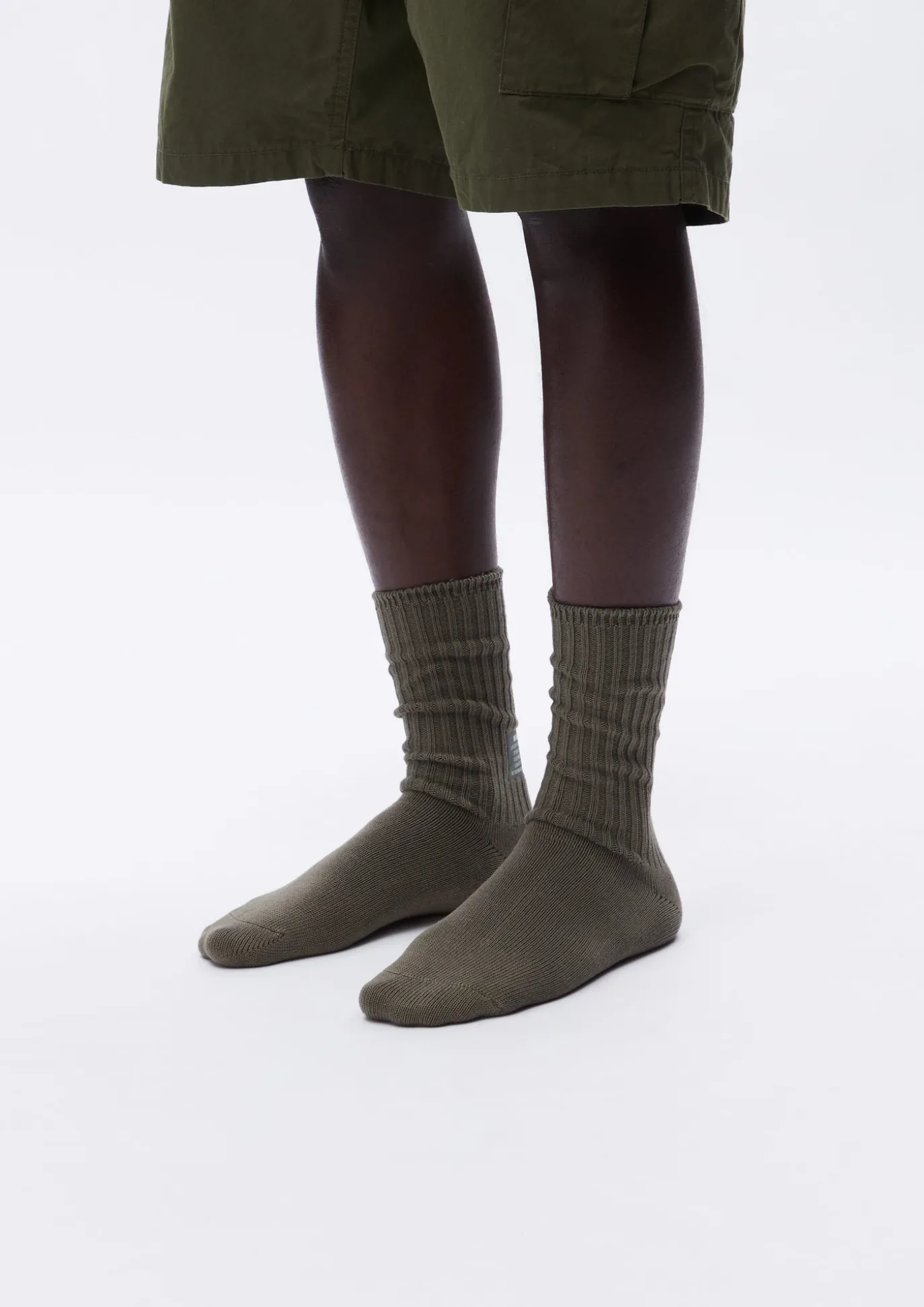 Crew-Length Ribbed Socks That Are Less Restrictive. Printed Logo On Upper Heel And Sole. Available In Three Colors: Black, Olive Drab And Off-White.