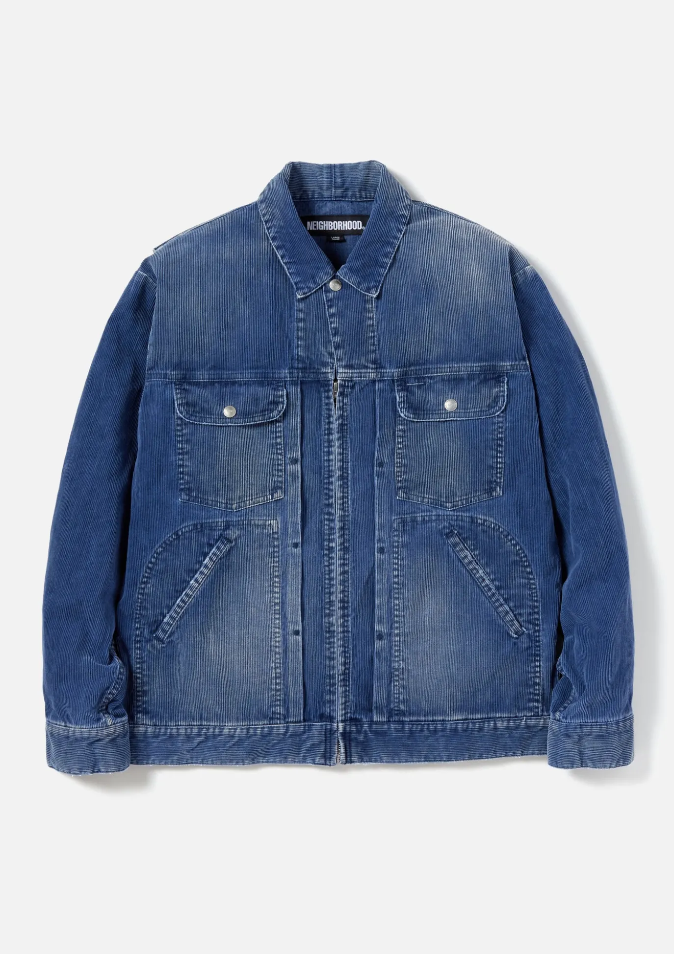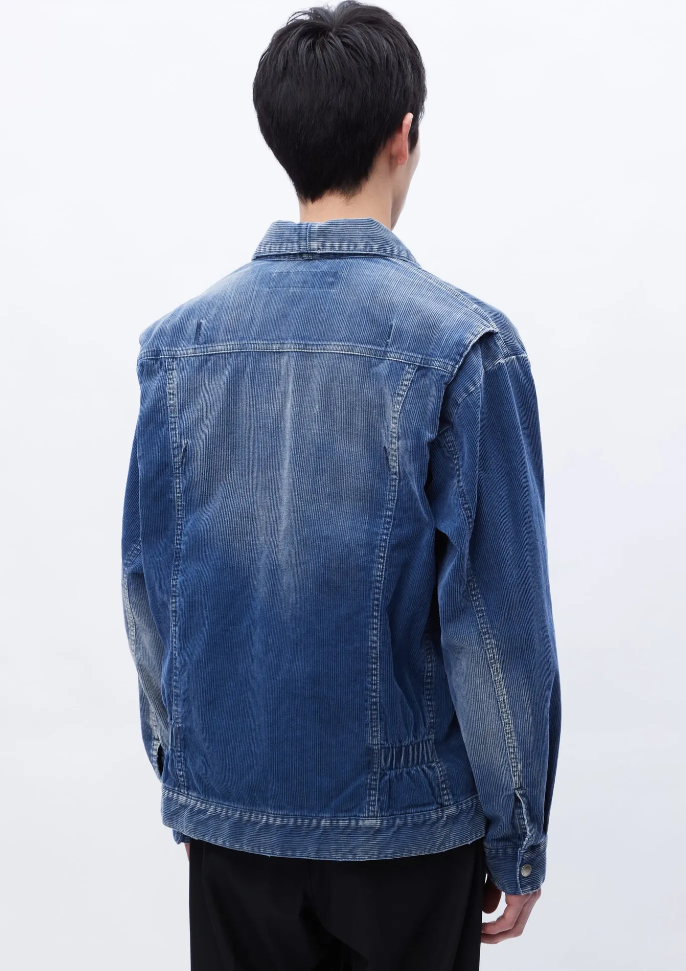 Zip-Up Trucker Jacket Constructed Of Sulfide-Dyed Corduroy With Faded Retreatment. Flap Pockets On Both Chest And Waist. Action Pleats On Rear For Extra Movement.
