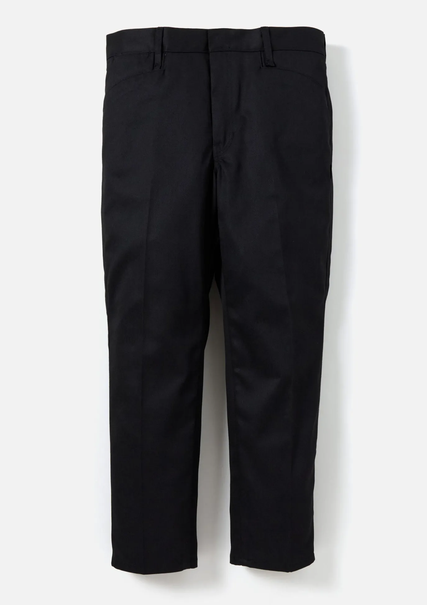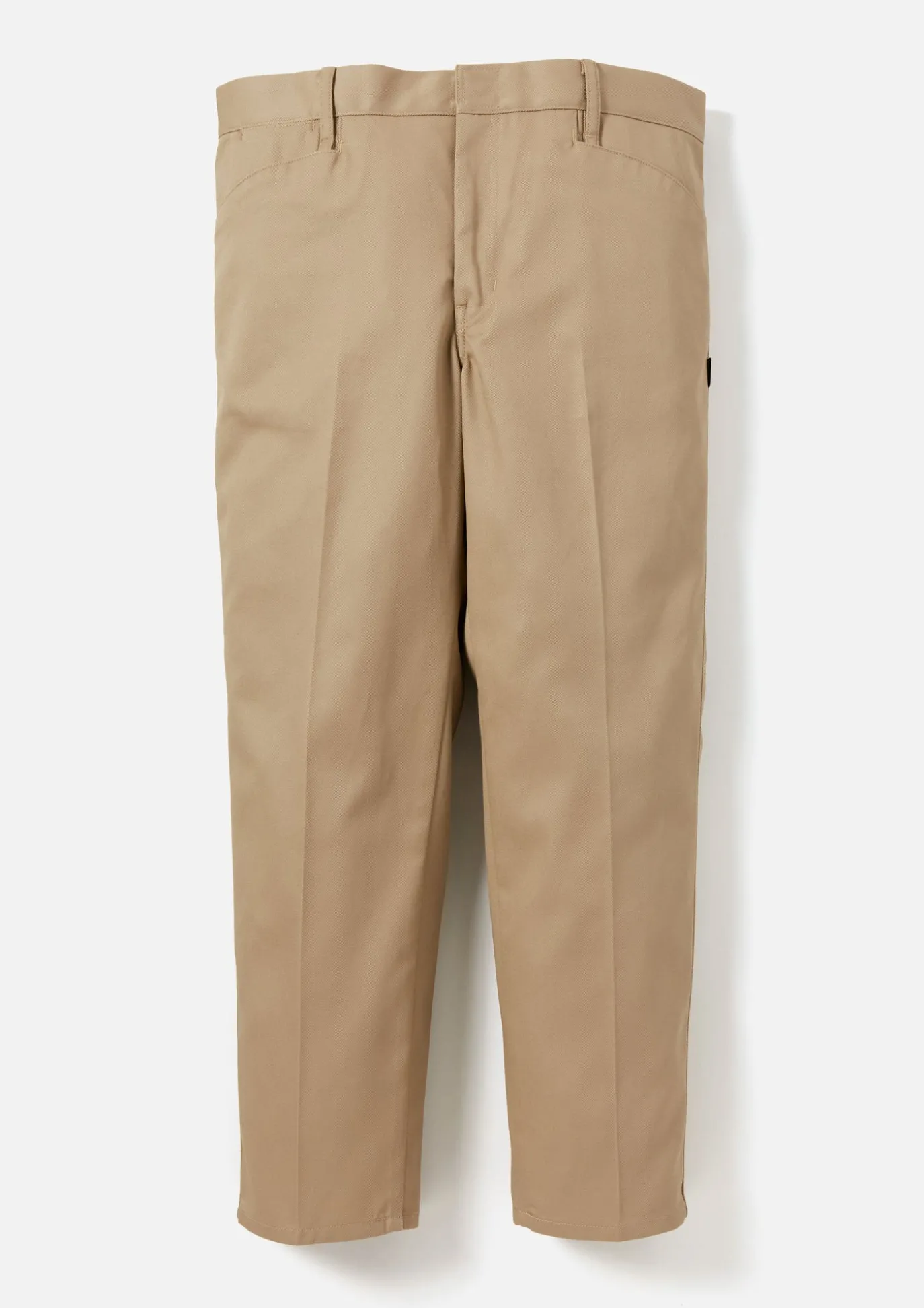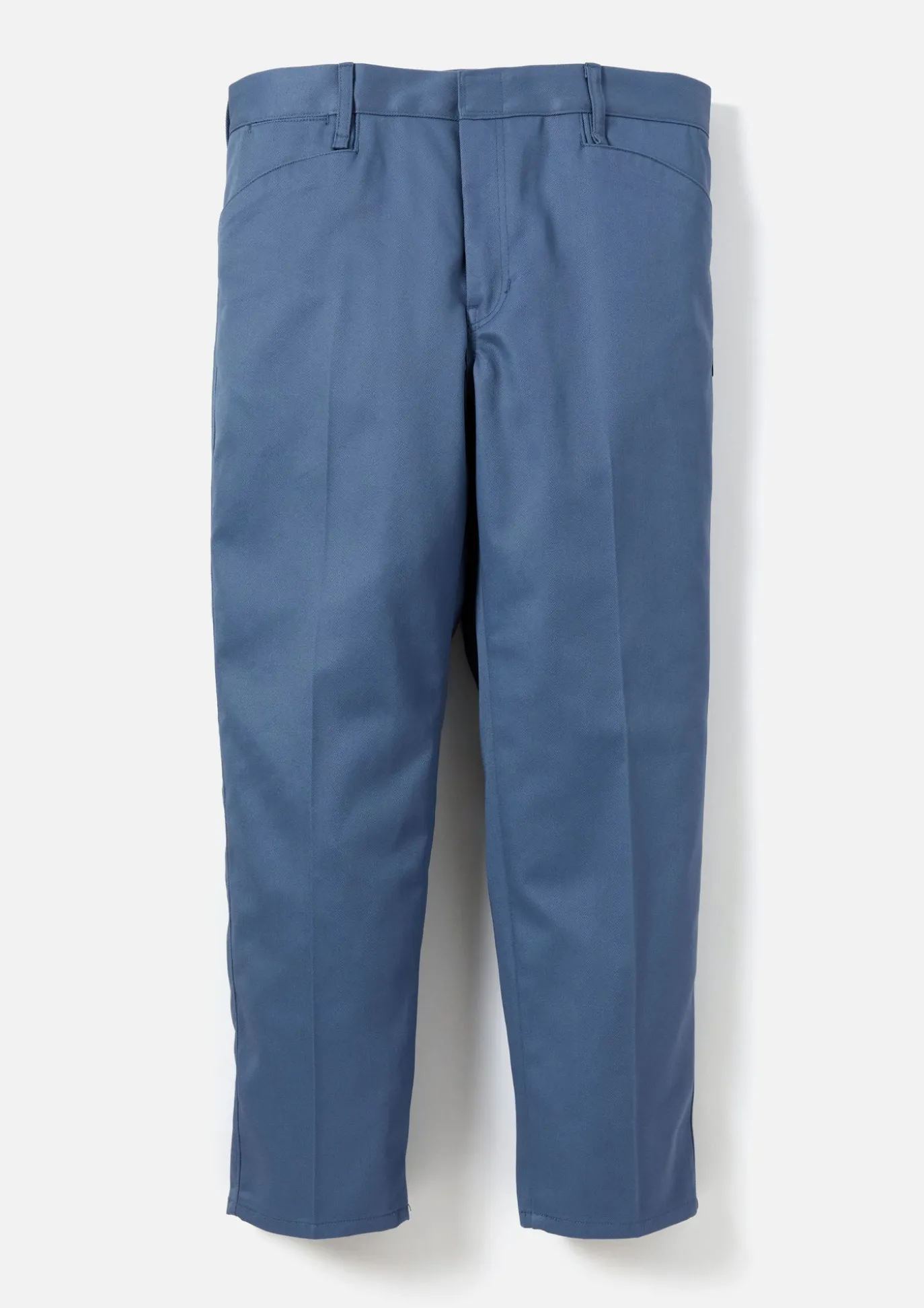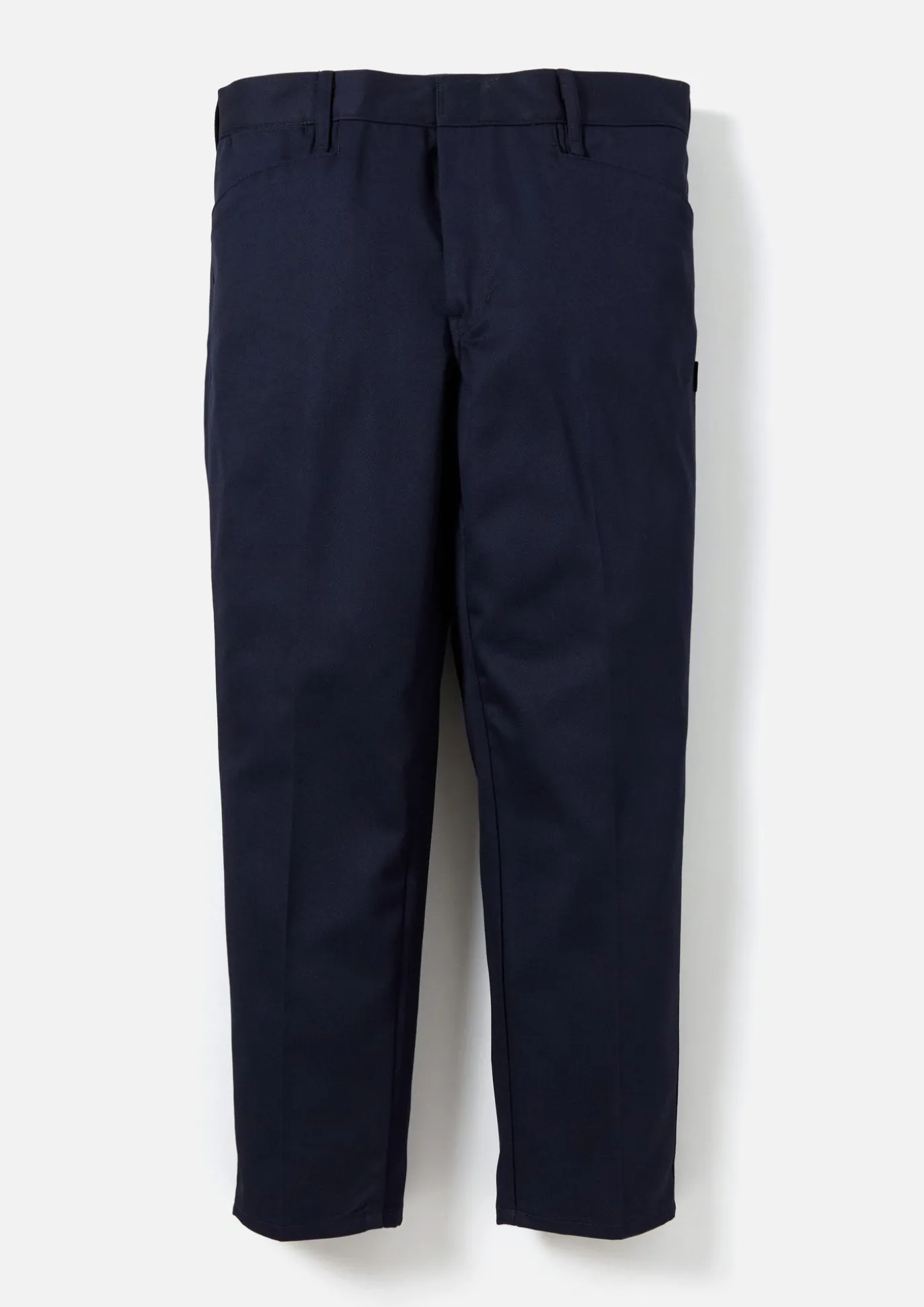 Slim Silhouette Work Pants Constructed With Polyester/Cotton Blend Chino Cloth. Slightly Rounded L-Pockets. Pocketing And Waistband Lined With Custom Brand Logo Monogram. Brand Label On Side Seam.
