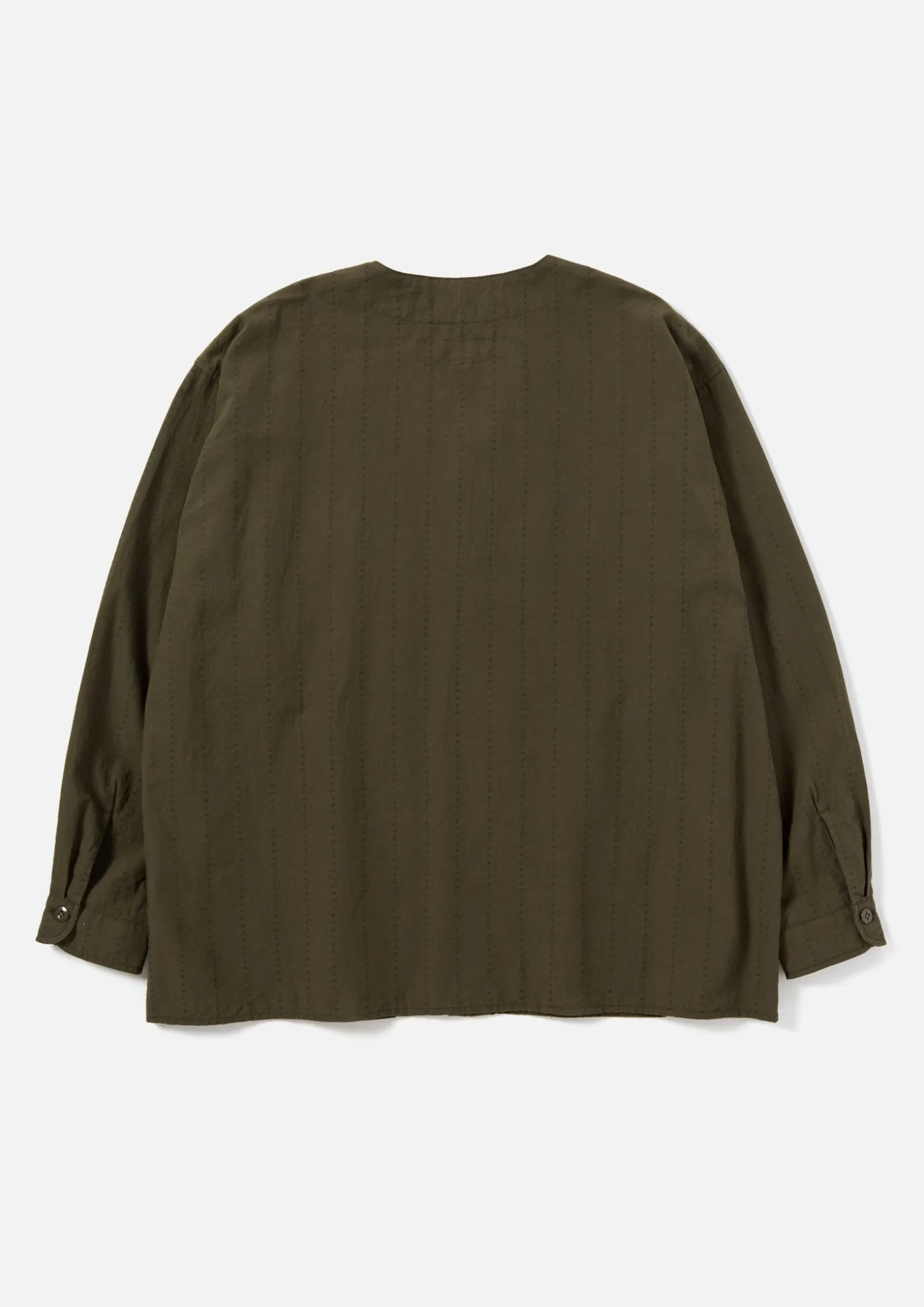 Dobby Weave Collarless Shirt With Original Stripe Pattern. Single Ball-Rimmed Pockets On Both Sides, Brand Tag On Left Hem. Relaxed Silhouette.
